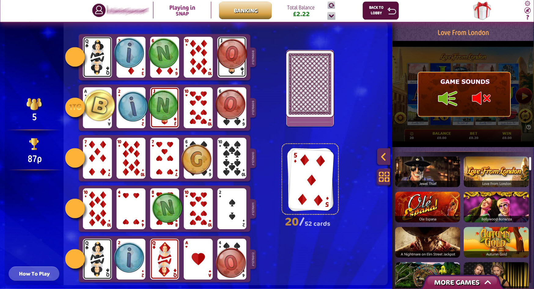52-5 bingo Game Help