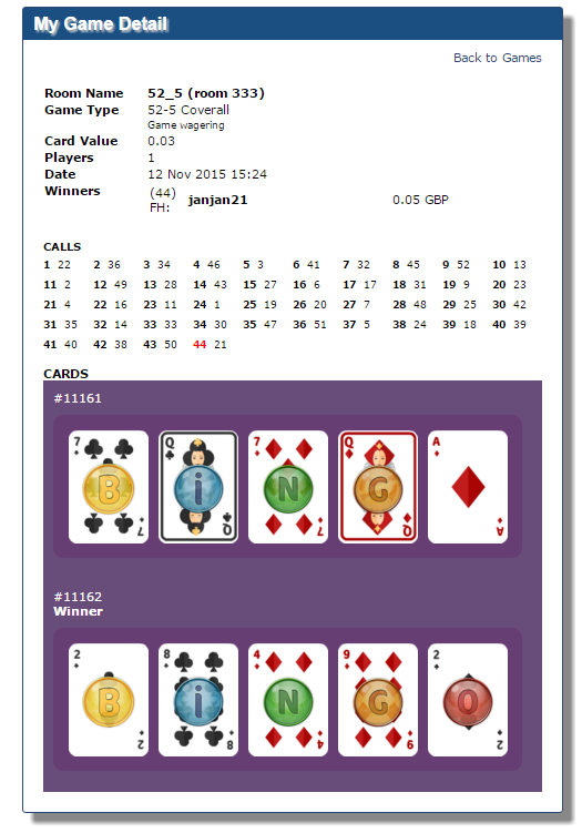 If you weren't in the room in time to see the winning message, don't worry, you'll still be awarded your wins and you can see details of previous games in the "game history" section of the "my account" menu.